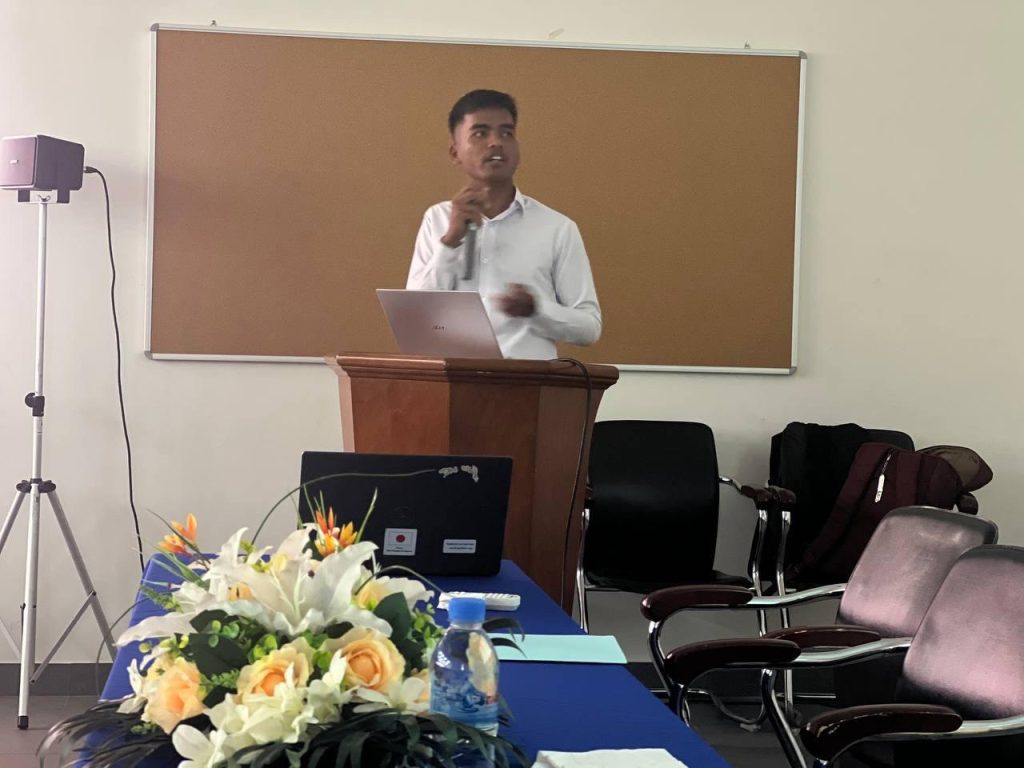 បទបង្ហាញទី១១ ដោយកញ្ញា ហឿន ស៊ាងហៃ និស្សិតវិទ្យាស្ថានបច្ចេកវិទ្យាកម្ពុជា បានធ្វើបទបង្ហាញស្ដីពី “ការវាយតម្លៃការផ្លាស់ប្តូរគុណភាពរូបគីមី និងមីក្រូជីវសាស្រ្តនៃចំណិតត្រីសម្ងួតក្នុងពេលស្តុកទុក”។